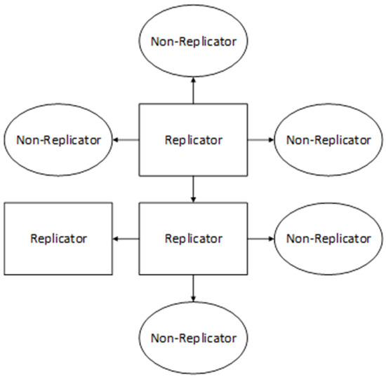 - Sipper, M. Fifty Years of Research on Self-Replication: An Overview. Artif. Life 1998, 4, 237–257. [Google Scholar] [CrossRef]