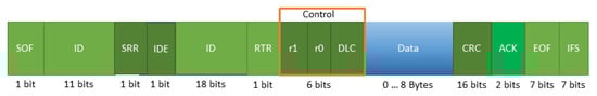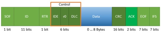 - Reserved bit (r0): Bit reserved by the standard. Has a default value of ‘0′ but the CAN controllers accept it independently of its logical value;