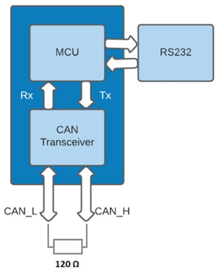 - Zhijian, L.; Tiehua, M. Design of CAN-Bus universal interface module based on USB. In Proceedings of the 2011 International Conference on Consumer Electronics, Communications and Networks (CECNet); Institute of Electrical and Electronics Engineers (IEEE), Xianning, Chian, 16–18 April 2011; pp. 4020–4023. [Google Scholar] [CrossRef]