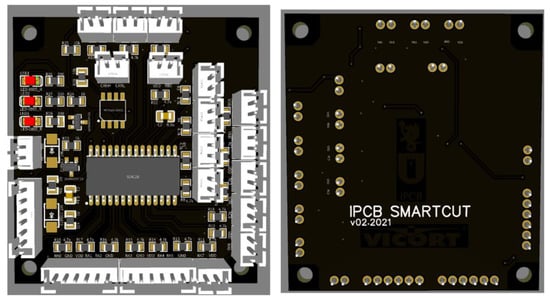 The work presented here led to the development of the first printed circuit board (PCB) “IPCB SMARTCUT V00.2021” of an ECU CAN 2.0 B characterized by flexibility in the acquisition of data from digital and analog inputs/outputs and RS232 communication for data analysis. Figure 7 shows the ECU prototype developed and tested in this work.