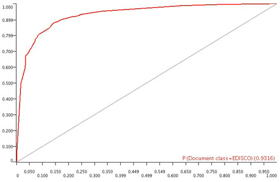 To integrate external data, it was essential to find a set of records to generate a training set and a test set to pass to the classifier. The strategy adopted is to carry out a series of searches on certain online catalogs that can be likened to existing content. By grouping titles and subjects of the Edisco DB (https://www.edisco.unito.it, accessed on 9 November 2021) together, a set of words was returned that could be used as the starting point to run a search in other catalogs. By analyzing the n-grams, a threshold value was determined that would ignore words such as names of people. The study of n-grams, which are schematized models of fundamental recurrent architectures in language, consists of assigning a certain probability to a word occurring in combination with other words. Given a dictionary, or a set of words, it is therefore a question of the system assigning a certain probability to an n-gram and considering it as the probability that the last word would appear after the other n-1 words (in that order). The idea is to derive some series of possible n-grams starting from the strings offered by the DB Edisco, in particular from titles and topics related to the works. Once the set of words was refined, it was possible to submit a series of queries to Italian book collections that would allow queries according to machine languages. The set of identified words was used as a search key in the subject field. A rather heterogeneous catalog that allows remote querying is that of the Linked Open Data project of the Coordination of Special and Specialist Libraries of Turin (CoBiS), which contains 438,942 records. Records with language tags not corresponding to Italian publications were ignored. Records with titles shorter than 11 characters were also discounted. A limit was set for the sample analysis so that only works were shown that were connected to others according to an FRBR hierarchical structure. An additional filtering process of valid records was implemented. The strategy was to consider only those records that included a linked subject descriptor. This choice was due to extracting the relevant queries, searching for new records that have subject descriptors. In the evaluation phase of the records generated by the CoBiS import, the grouping in digraphs, n-grams composed of two graphemes were used. This type of operation was carried out both individually on the Edisco and CoBiS records and then again by combining the two data sources. In the set of documents containing all the records of the two catalogs, the two-grams obtained are filtered according to a minimum frequency rule according to which documents with a “document frequency” lower than the desired value were not considered. This part of the work was particularly useful to understand the composition of CoBiS records, without having to analyze them individually. Bringing out the most important n-grams allowed easily evaluating the type of records available. By creating lists of words to ignore, it was possible to quickly filter records that were not relevant, improving the quality of the set of titles to be kept. At the end of all the operations, it was possible to obtain a set of consistent records equal to 55,256 units, books that largely deal with topics relating to mountain excursions, the local history of Northern Italy, congresses and conferences, and the history of music and musical scores. In total, the Edisco database contains 25,343 records, of which 24,374 are in Italian.
