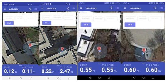 - Lee, L.; Jones, M.; Ridenour, G.S.; Bennett, S.J.; Majors, A.C.; Melito, B.L.; Wilson, M.J. Comparison of Accuracy and Precision of GPS-Enabled Mobile Devices. In Proceedings of the 2016 IEEE International Conference on Computer and Information Technology (CIT), Nadi, Fiji, 8–10 December 2016; pp. 73–82. [Google Scholar] [CrossRef]