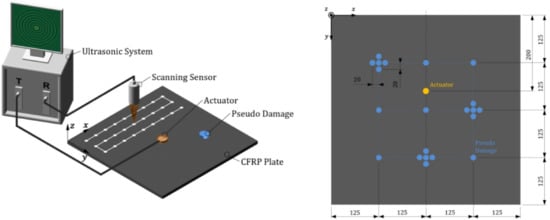 - Defect type: Pseudo defects consisting of a round steel plate (diameter 20 mm) which is attached to the plate and provides realistic wave interactions compared to real defects;