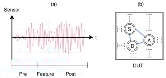 There are basically two main strategies of sensor data aggregation and sensor network architectures for machine learning that can be deployed to derive a feature vector F of the device under test (DUT) from the sensor data matrix D, i.e., the target variable y related to the global state ST of the DUT: