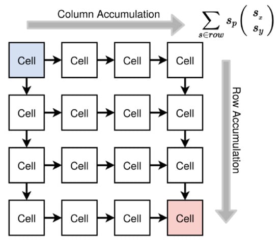 It is assumed that there is a sensor network SN represented by a graph G = ⟨𝕊,ℂ⟩ that consists of numbered (i,j) and identifiable sensor nodes S(p)i,j ∈ 𝕊 each at a different spatial position p = (x,y) providing at least one time-resolved sensor signal s(t). The sensor nodes can communicate with each other via a network structure (vertices of the SN graph) with connections comij,kl ∈ ℂ.