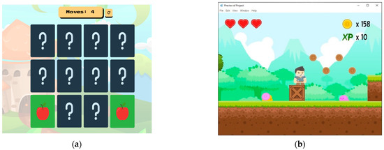 (a) Mini Games—Memory games; (b) Mini Games—adventure activity.