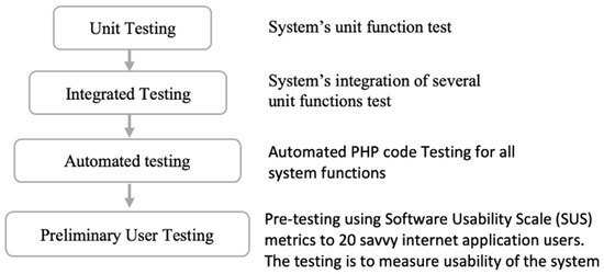 Apart from the software automated test, preliminary user testing was also conducted to ensure the programs ran as designed and planned, and all transactions were successfully made without error. This testing was deemed necessary before the researcher could conduct acceptance testing with the potential users (diabetics). In this testing context, the errors were identified from users’ misconceptions in determining the system flows. Feedback was also collected regarding the application interface and the way the system worked. For this purpose, the researcher utilized the established Software Usability Scale [22] to determine user perspectives from their use of the application. All the testing processes are illustrated in Figure 7.