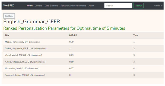 Selecting the most relevant and appropriate parameters (from the possible set of parameters) for a personalisation strategy greatly reduces the amount of time and resources that would be required to put together learning resources for each course, as suggested in [10]. This also cuts down the time for the process of initial categorisation of learners. Learners only have to go through tests/tasks or submit some information required for relevant parameters of courses they register for. The system saves such information for future use and analysis in personalizing other courses.