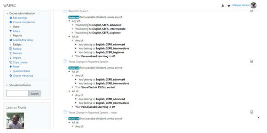 To address the issue of integrating multiple parameters, WASPEC’s approach towards personalisation is neither a single parameter nor a limited set of parameters, but a set of possible parameters. When personalisation incorporates multiple parameters, several challenges naturally arise. The first is the amount of time it will take for initial testing to place learners in appropriate groups/categories. Secondly, is the time and resources required to put together learning resources that satisfy every personalisation strategy from a combination of a set of parameters. Finally, what procedure will be used to select relevant personalisation parameters for each course.