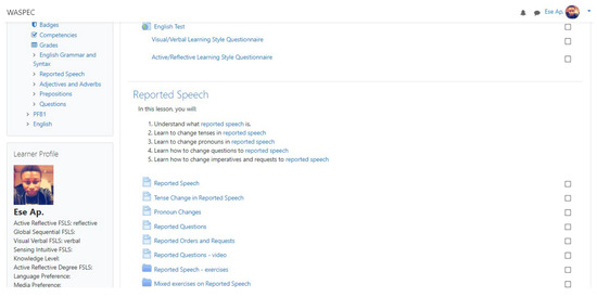 The rest of the paper is structured as follows: Section 2 presents related works specific to this paper. Section 3 presents a conceptual framework, describing the components and architecture of WASPEC in detail. In Section 4, the procedure of implementation is explained. Section 5 presents the process and tools of evaluating the system, while Section 6 presents the results. Section 7 compares the WASPEC learning platform to similar models of e-learning platforms that provide personalisation by extending LMSs. The paper ends with conclusions and future work in Section 8.