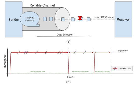 - He, E.; Leigh, J.; Yu, O.; DeFanti, T.A. Reliable Blast UDP: Predictable High Performance Bulk Data Transfer. In CLUSTER ’02, Proceedings of the IEEE International Conference on Cluster Computing, Chicago, IL, USA, 26 September 2002; IEEE Computer Society: Washington, DC, USA, 2002; p. 317. [Google Scholar]