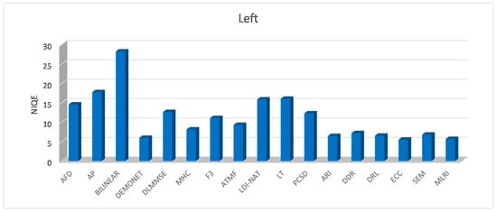Figure 9 shows the objective NIQE metrics for the various algorithms. It is worth mentioning that even though the pansharpening-based method provides the lowest NIQE values (best performance) and provides visually very appealing enhanced images, it is noticed that some pixel regions in the enhanced images do not seem to be well registered in the sub-pixel level. Since the NIQE metric does not take into consideration issues related to registration in its assessment, it clearly favors the pansharpening-based method over others as shown in Figure 9. Other objective metrics using RMSE, PSNR, SSIM were used in [] to demonstrate that the EDSR algorithm performed better than other methods.