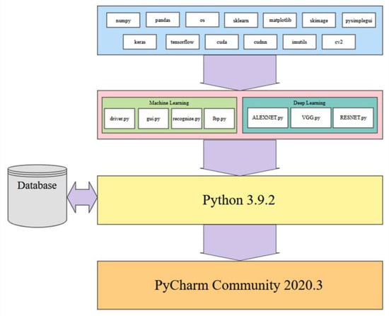 Continuing prior research [], Python® was the language used, which was a requirement for our continuing research and experimentation. Python is a powerful programming tool that granted us access to many libraries that assisted with implementing this project. Those imported libraries include Pandas, NumPy, OS, Scikit-Learn, Matplotlib, Keras, TensorFlow, CUDA, and cuDNN, as shown in Figure 2.