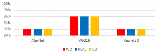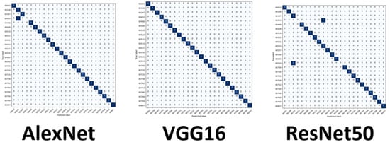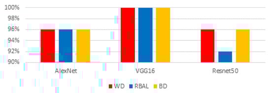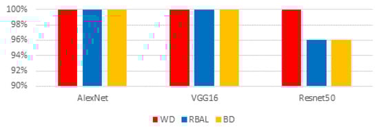 Much like machine learning was a form of data mining, deep learning algorithms are a subset of machine learning that functions similarly, but with differing capabilities []. If a deep learning algorithm returns an incorrect prediction, the model itself will correct it internally. These algorithms may also use selections and preferences initially, but once deployed, they learn solely on the model and what it was trained on to predict and correct upon []. Vehicles that drive automatically or features on them that make lane corrections, braking, and accident avoidance autonomously are some examples of deep learning algorithms in use. We can continue the flashlight analogy to better assist with understanding deep learning algorithms. The light would not need a keyword to associate with action because it would compute from its model and learn to be on or off when required []. For our continuing research, we have chosen AlexNet, VGG16, and ResNet50 deep learning algorithms.