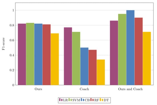 where is the number of samples with a given label i and is the of a given label i. F1 score is an ideal measure since it calculates the harmonic mean between recall and precision. Over the years, the four ML models’ performance metrics selected in our research have proved to be reliable and provided a true ML model’s performance (i.e., in [,]). To validate the performance of the machine learning models, K-fold cross-validations were used where .