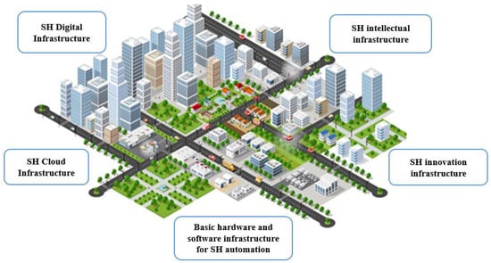 The SH intellectual infrastructure consists of cyber-physical subsystems and complexes of modern protection tools (encryption, coding, etc.), as well as processing the received information using advanced analytics technologies to make the best management decisions. The main purpose of this infrastructure is to ensure the information security and confidentiality of the data circulating in it. The intellectual infrastructure includes a wide range of modern tools and interfaces that provide processing of various kinds of data and the provision of digital services and services as well as methods for automated processing and preparation of decision making, data recognition and decryption, “end-to-end” digital platforms (including cloud platforms), etc.