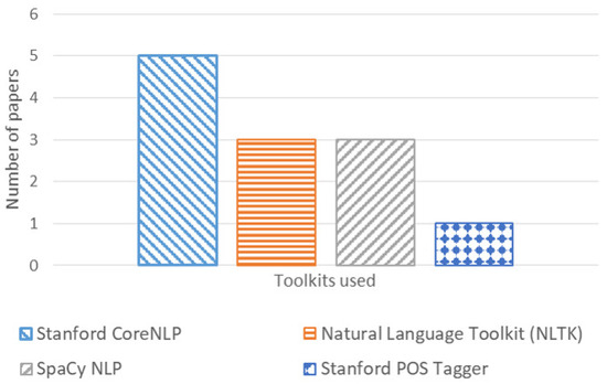 - Manning, C.D.; Surdeanu, M.; Bauer, J.; Finkel, J.R.; Bethard, S.; McClosky, D. The Stanford CoreNLP natural language processing toolkit. In Proceedings of the 52nd Annual Meeting of the Association for Computational Linguistics: System Demonstrations, Baltimore, MD, USA, 22–27 June 2014; pp. 55–60. [Google Scholar]