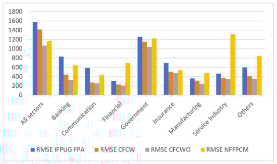 When CFCW is compared to NFFCMP, improvement in the accuracy of the CFCW estimate can be seen for the individual sectors, where the largest percentage differences are MAE = 72.00% (service industry), MAPE = 67.69% (financial), and RMSE = 71.79% (service industry); the mean percentage differences of the individual sectors compared to the ungrouped dataset are MAE = 49.98%, MAPE = 49.03%, and RMSE = 38.25%.