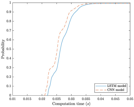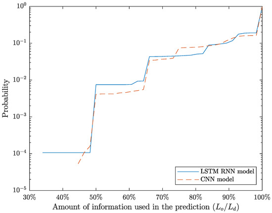 The first result to be evaluated is the CNN detection probability, which measures the probability of correctly detecting the SIP dialog identifier when the observed sequence has length L o = L d , i.e., the multimedia session created by the user agents is terminated. Therefore, to compute the detection probability we compared for each observed sequence o k if the output value of the CNN model y ^ k was similar to the SIP dialog identifier represented in the dataset y k . Table 7 expresses the detection probability obtained for each subdataset for the proposed CNN model and the LSTM RNN model. To compute the detection probability the CNN and LSTM RNN models were trained during 30 and 255 epochs, respectively.