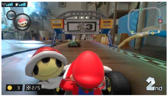 These glasses represent an HMD (Head Mounted Display) device in the shape of glasses that allows you to view applications and web pages in AR. Microsoft has also tried to implement its version of 3D glasses using AR technology; thus, the so-called “HoloLens” (Figure 4) was born, an HMARD device that can be positioned on the head. However, AR systems are not limited to specific wearable devices but are also implemented on smartphones by improving algorithms [16,17]. In particular, in 2016, a game application called “Pokemon Go” was launched by Niantic and Nintendo, which made a boom in downloads in just one week. Another AR application exploited by the Nintendo Switch, a well-known Nintendo home console, is represented by the game “Mario Kart Home Circuit” (released on 16 October 2020).