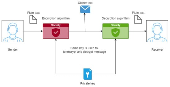 - Abusukhon, A.; Talib, M. A novel network security algorithm based on private key encryption. In Proceedings of the 2012 International Conference on Cyber Security, Cyber Warfare and Digital Forensic (CyberSec), Kuala Lumpur, Malaysia, 26–28 June 2012; pp. 33–37. [Google Scholar] [CrossRef]