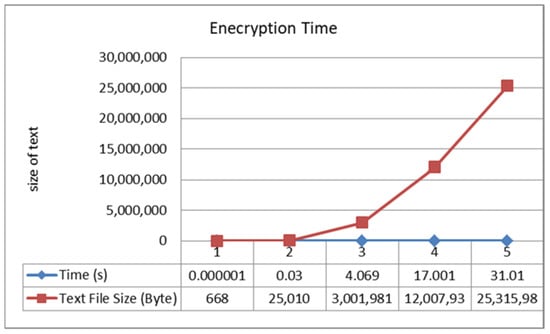 The relationship between text size and encryption time of the proposed algorithm.
