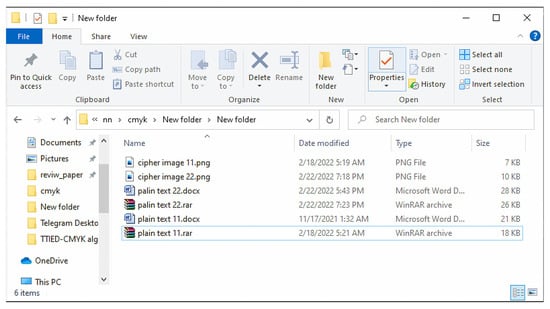 Efficient and robust encryption should have a high sensitivity to its secret key, meaning that even slight changes in the secret key should result in totally different cipher images. Moreover, with a slightly changed key, the method must be impossible to decrypt a cipher image or obtain some plain text patterns [34,35,36,37,38,39]. This is particularly useful for defending against brute force attacks. In this paper, there are four keys, each key consists of 37 or 256 bytes. In this test, applied 37 bytes, the total key size is 148 bytes. The encrypted image is decrypted using four slightly different test keys to examine the key sensitivity of our proposed technique. The plaintext is “This text to test TTIED-CMYK Mode Algorithm”. The results presented in Table 6 show the influence of minor changes to key.