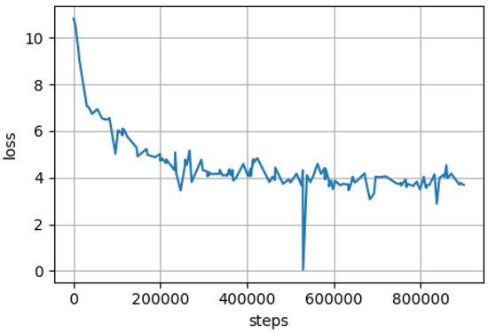 Building a vocabulary on the provided corpus was the first step in the pre-training process. We created cased and uncased vocabularies with 50,000 word pieces using byte-pair encoding (BPE) [14]. The number of characters coverage—was set to 2000; to reduce UNKs, we used a larger character set to cover less frequent chars/symbols. A language model’s performance is heavily reliant on its vocabulary. In general, the better the tokenization, the better the model is expected to perform. Hence, we used the vocabulary created by Romanian BERT which encodes a word in approximately tokens while multilingual-BERT (M-BERT) can reach up to 2 tokens/word for the cased vocabulary [14]. On the same text, Romanian BERT has an order of magnitude of less unknown tokens than M-BERT. For each assessed model, Table 2 presents a tokenization example. The normal BERT recipe was used during pre-training. Each model was trained for 1 million steps, with the first 900 K on a 128-step sequence. The development of both models is depicted in Figure 1. The models were trained using 40 batches per GPU (for 128-sequence length) and then 20 batches per GPU (for 512-sequence length). Layer-wise adaptive moments optimizer for batch (LAMB) training was utilized, with a warm-up over the first 1% of steps up to a learning rate of , then a decay. Eight NVIDIA Tesla V100 SXM3 with 32 GB memory were used, and the pre-training process took approximately 2 weeks per model.