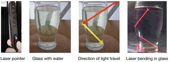 The third activity gets students to bend laser light in a glass of water (Figure 5), and the fourth gets students to add a rainbow to an image. Integrating a broad range of different activities into Project Rainbow was useful. While some activities needed computers, other activities encouraged students to move away from their computers. Hopefully, people will have a laser pointer (such as from a cat toy). We list the materials (pint glass, washing liquid, laser pointer) and provide the instructions in a YouTube video. While for the fourth activity, we give instructions using Photoshop, we explain the process such that people could use another editor, including: load an image, create a rectangle, change the gradient fill, rasterise, change opacity and blur. In fact, we used this image as the memorable image for the whole site (see Figure 1).