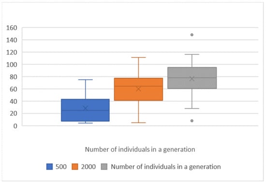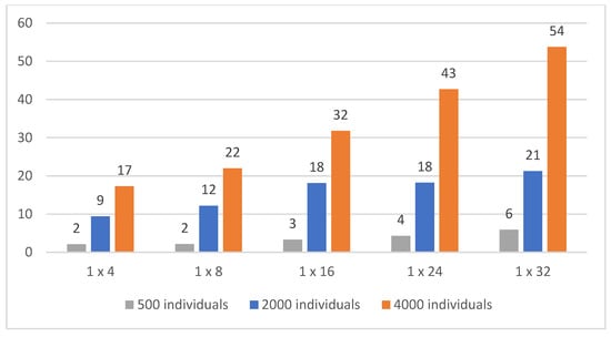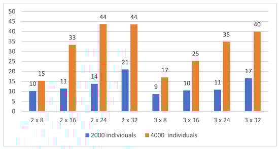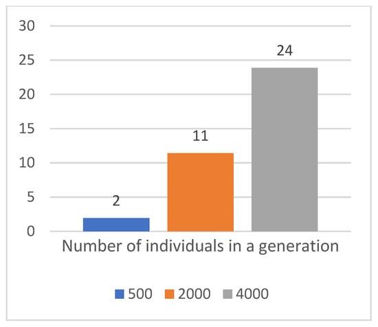 Comparing the data in Table 6, we see a similar contribution of changes at the mutation level and by increasing the number of individuals in the population. However, changing the mutation rate has a minimal effect on the computation processing time, while increasing the number of individuals leads to a fold increase in the computation time.