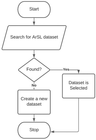 In this step, we searched for a suitable standard ArSLA dataset. If no suitable dataset was found, there were no other options but to create our own dataset. Figure 2 shows the dataset selection strategy.