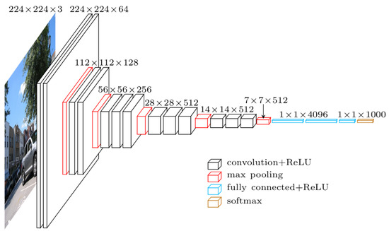 The use of very small 3 × 3 receptive field (filters) over the whole network with a stride of 1 pixel was proposed in this model. In AlexNet, the receptive field in the first layer was 11 × 11 with stride 4, whereas the receptive field in the second layer was 11 × 11 with stride 4. The notion of utilizing 3 × 3 filters in a uniform manner increased the VGG performance. Two 3 × 3 filters in succession produce a 5 × 5 effective receptive field. Three 3 × 3 filters, meanwhile, produce a 7 × 7 receptive field. A combination of multiple 3 × 3 filters can thus stand in for a larger receptive area. In addition to the three convolution layers, there are three non-linear activation layers, rather than the single one in 7 × 7. Therefore, the decision functions become more discriminative and would provide the network the ability to converge quickly. Secondly, it greatly reduces the number of weight parameters in the model. This can also be viewed as a regularization of the 7 × 7 convolutional filters, forcing them to decompose through the 3 × 3 filters, with non-linearity introduced in the middle using ReLU activations. The network’s inclination to over-fit during the training exercise would be reduced as a result as shown in Figure 6. Furthermore, 3 × 3 is the smallest size that can capture the concepts of left to right, top to bottom, and so on. As a result, lowering the filter size even further may have an influence on the model’s capacity to recognize the spatial aspects of the image. The network’s persistent use of 3 × 3 convolutions made it incredibly simple, elegant, and easy to deal with [24]. Figure 6 shows VGG16 architecture.