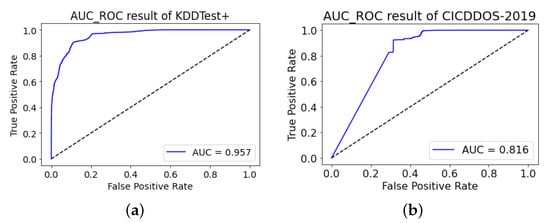 AUC_ROC curve of our proposed model on (a) NSL-KDD and (b) CIC-DDoS2019.