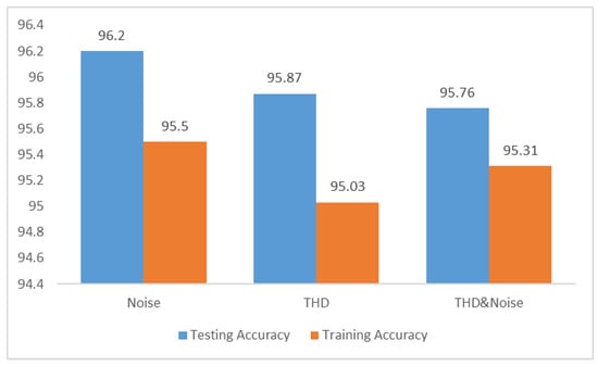 Training and testing accuracy details of LGR models for various THD and noise combined signals.