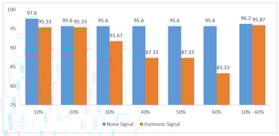 Comparison of logistic regression model based on the performance on zcp detection in a distorted signal with various noise levels and harmonic levels in terms of testing accuracy is presented in Figure 7. From Figure 7, it is observed that logistic regression model is able to detect zero-crossing points on noisy signals with good accuracy than harmonic signals.