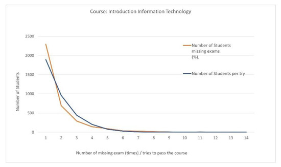 The number of students who missed exams in the IIT course and the number of attempts to pass are shown for each category in Table 2.