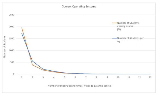 The number of students who missed exams in both the IIT and OS courses and the number of attempts to pass are shown in Table 4.