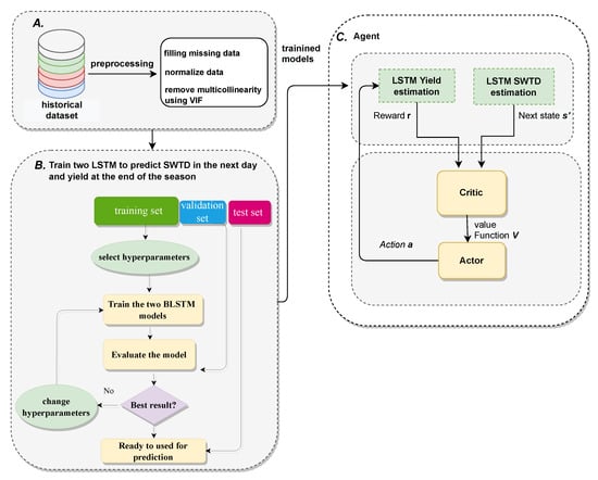 - Alibabaei, K.; Gaspar, P.D.; Assunção, E.; Alirezazadeh, S.; Lima, T.M. Irrigation optimization with a deep reinforcement learning model: Case study on a site in Portugal. Agric. Water Manag. 2022, 263, 107480. [Google Scholar] [CrossRef]