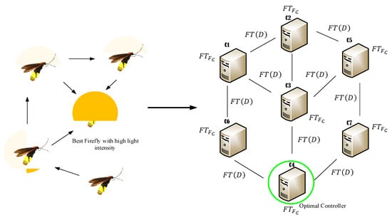 where ℵ(D) is the controller absorption coefficient used to attract the best controllers based on the FA algorithm, best high light intensity for firefly, and γ is the absorption coefficient for absorbing a highly fault-tolerant controller. Based on the controller attractive value ℵ, the optimal controller is a selection that can be formulated as