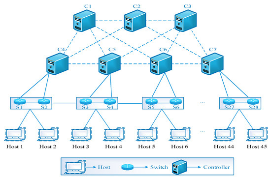- Li, G.; Wang, X.; Zhang, Z. SDN-Based Load Balancing Scheme for Multi-Controller Deployment. IEEE Access 2019, 7, 39612–39622. [Google Scholar] [CrossRef]
