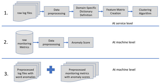 The remainder of this paper is as follows. Section 2 talks about related work. Section 3 provides information about data that we have considered for this study. Then, Section 4 introduces the rationale of our approach. Section 5 talks about anomaly detection methodologies used for log files, while Section 6 talks about those for monitoring metrics. Section 7 provides some results at machine level by combining the two types of data. Section 8 concludes the paper discussing the presented work.