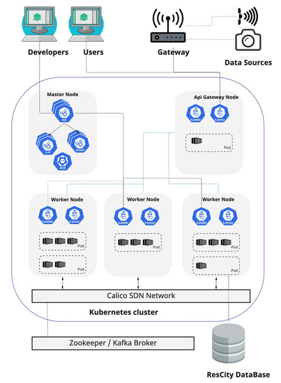 - Solarte, Z.; Gonzalez, J.D.; Peña, L.; Mondragon, O.H. Microservices-Based Architecture for Resilient Cities Applications. In Proceedings of the International Conference on Advanced Engineering Theory and Applications, Bogota, Colombia, 6–8 November 2019; pp. 423–432. [Google Scholar]