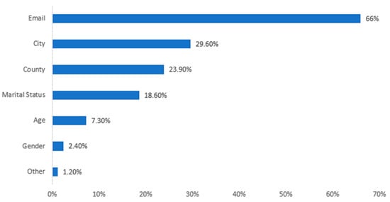 Regarding the demographic information that seems to discourage participants (see Appendix Item 28) from completing a web survey (Figure 1), the information that seems to precede is the email address (66%), the city (29.60%), the country (23.90%), and the marital status (18.60%).