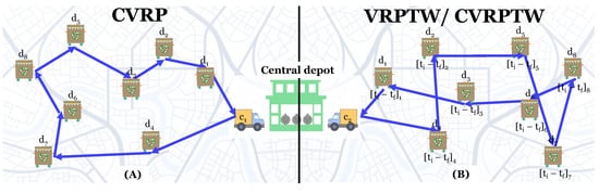 52. Toth, P.; Vigo, D. The Vehicle Routing Problem; SIAM: Philadelphia, PA, USA, 2002. [Google Scholar]
