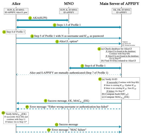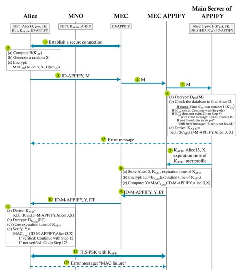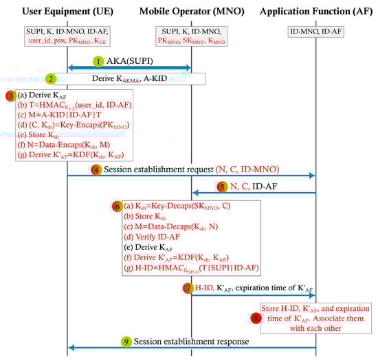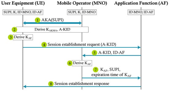Next, we present the steps of AKMA in Protocol 1, and Figure 3 summarizes the communication flow of the AKMA protocol, which is adapted from 3GPP TS 33.535 [].