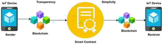 The smart contract is a method that is stored on the public ledger and dynamically executed while defined terms of service are met. These services carry out the developers’ instructions at the most basic level. Its benefits are evident in corporate partnerships, where they are typically used to handle contracts, and all parties can be satisfied with the conclusion with the help of an intermediary [68]. The smart contract method is depicted in Figure 5.