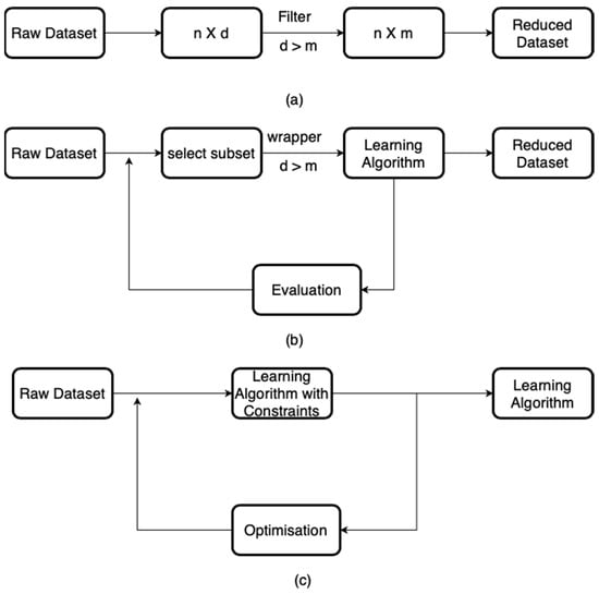 Figure 1. Conceptual diagram of (a) filter, (b) wrapper, (c) embedded method.