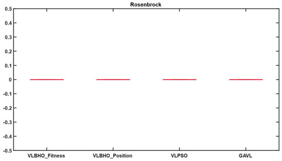 Figure 2. The fitness values after convergence for VLBHO fitness, VLBHO position, VLPSO for Rosenbrock.