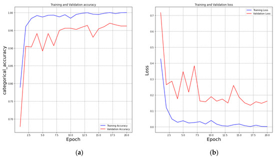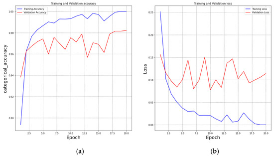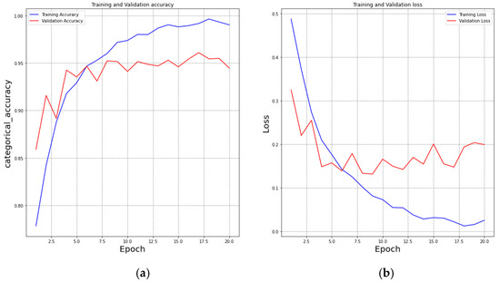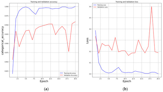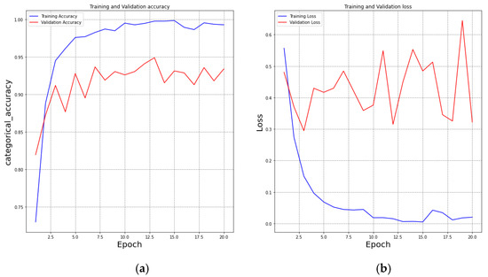 MobileNetV2; (a) training and validation accuracy; (b) training and validation loss.