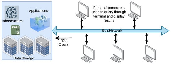 Mainframe computers are high-performance computing platforms, performing real-time computations using huge amounts of storage (private databases) and processors (transactional servers). In addition, these use various applications to perform various tasks, such as processing banking data and providing high resilience, agility, and security [14]. A general mainframe-based computing model is replicated using Figure 2.